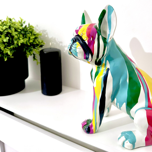 Unleash artistic flair into your decor with the Bold Drip Art Bulldog Statue. This modern abstract sculpture combines the fierce loyalty of a bulldog with a vibrant, drip art design, creating a striking statement piece for any room. Crafted from durable resin and bursting with bold, colourful accents, this eye-catching statue brings contemporary style to life. Whether displayed in a living room, office, or art space, this unique bulldog figurine adds personality, colour, and a touch of whimsy to your decor. Perfect for dog lovers and art enthusiasts alike, it’s a bold fusion of creativity and canine charm.